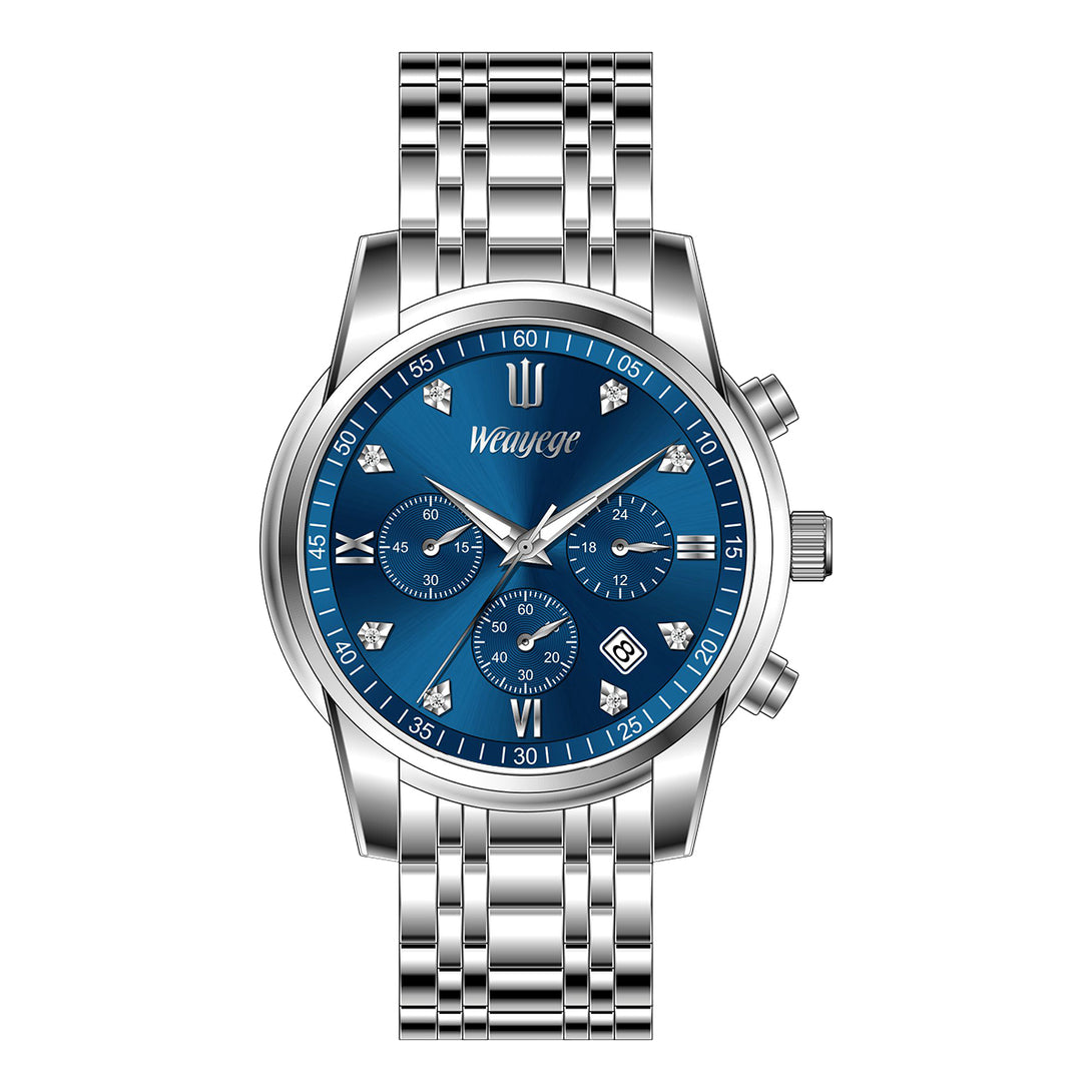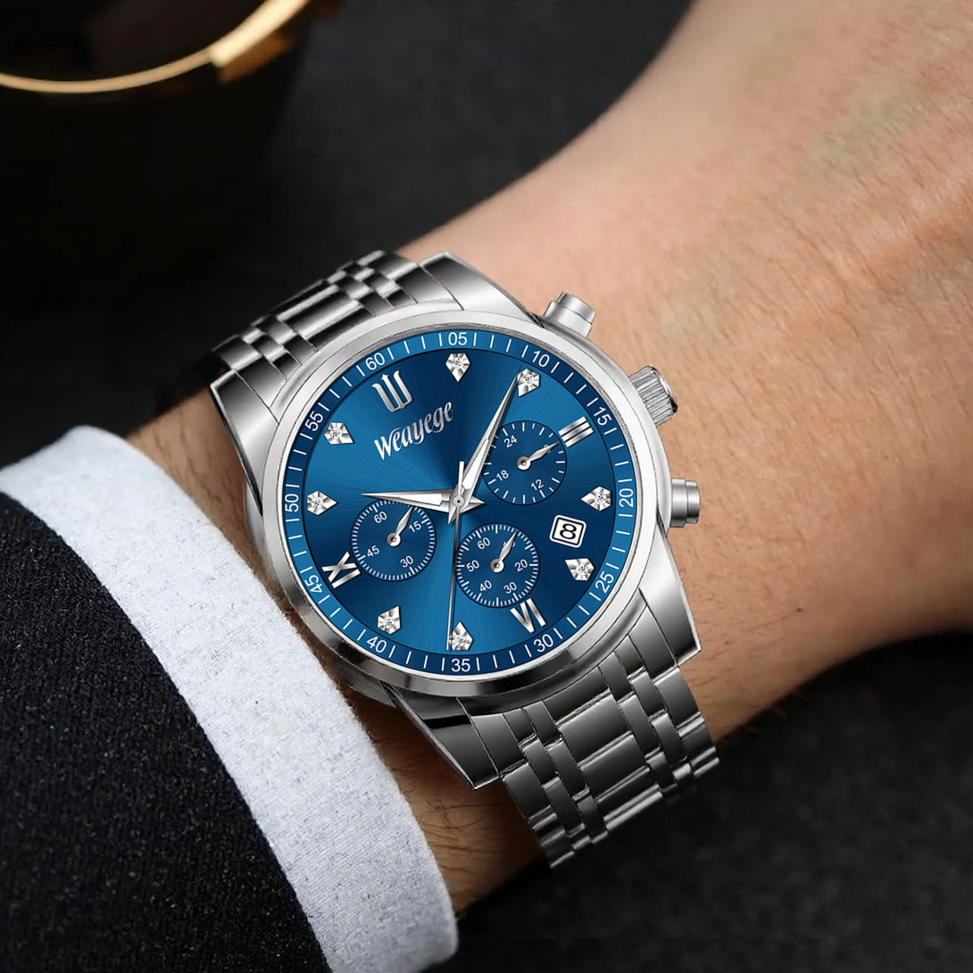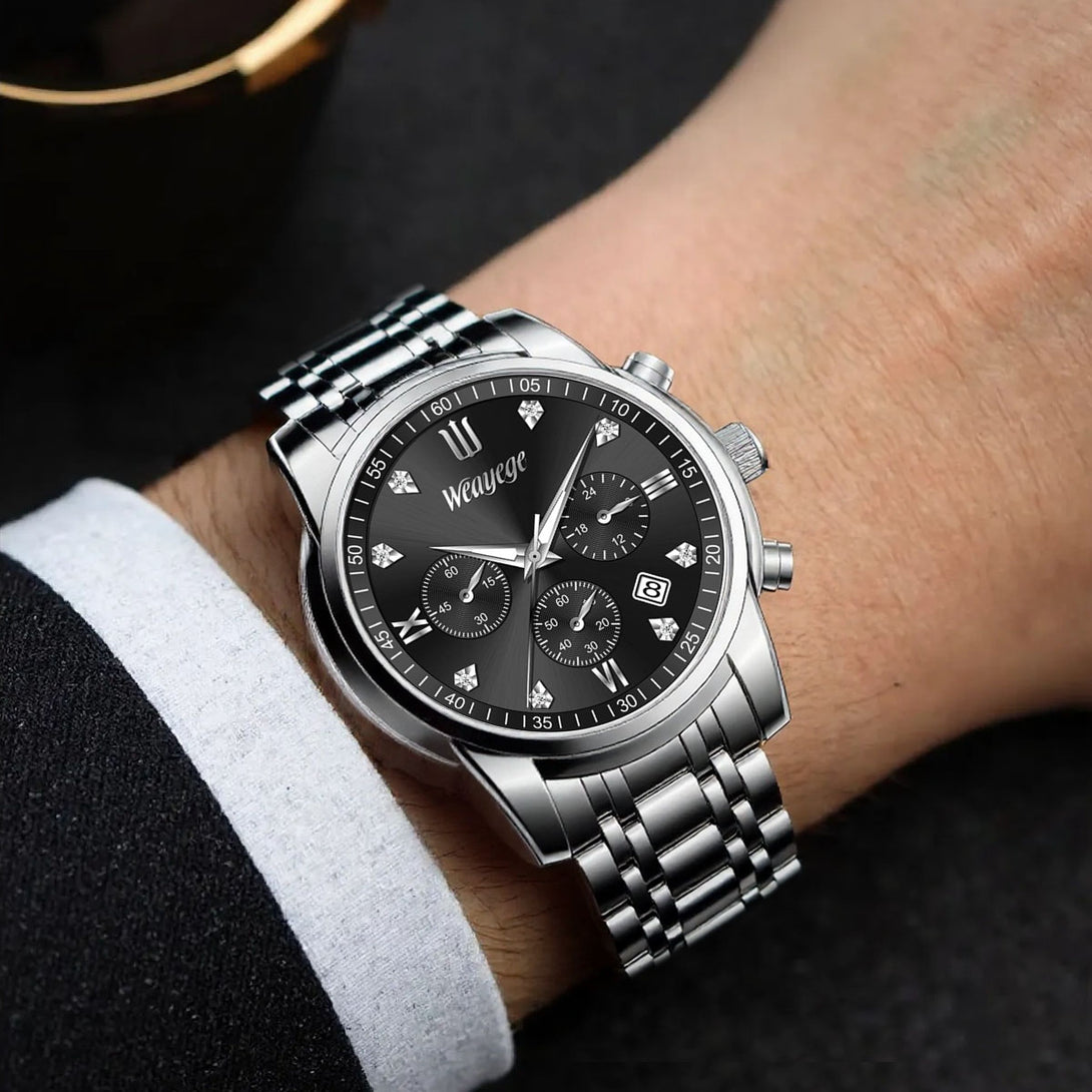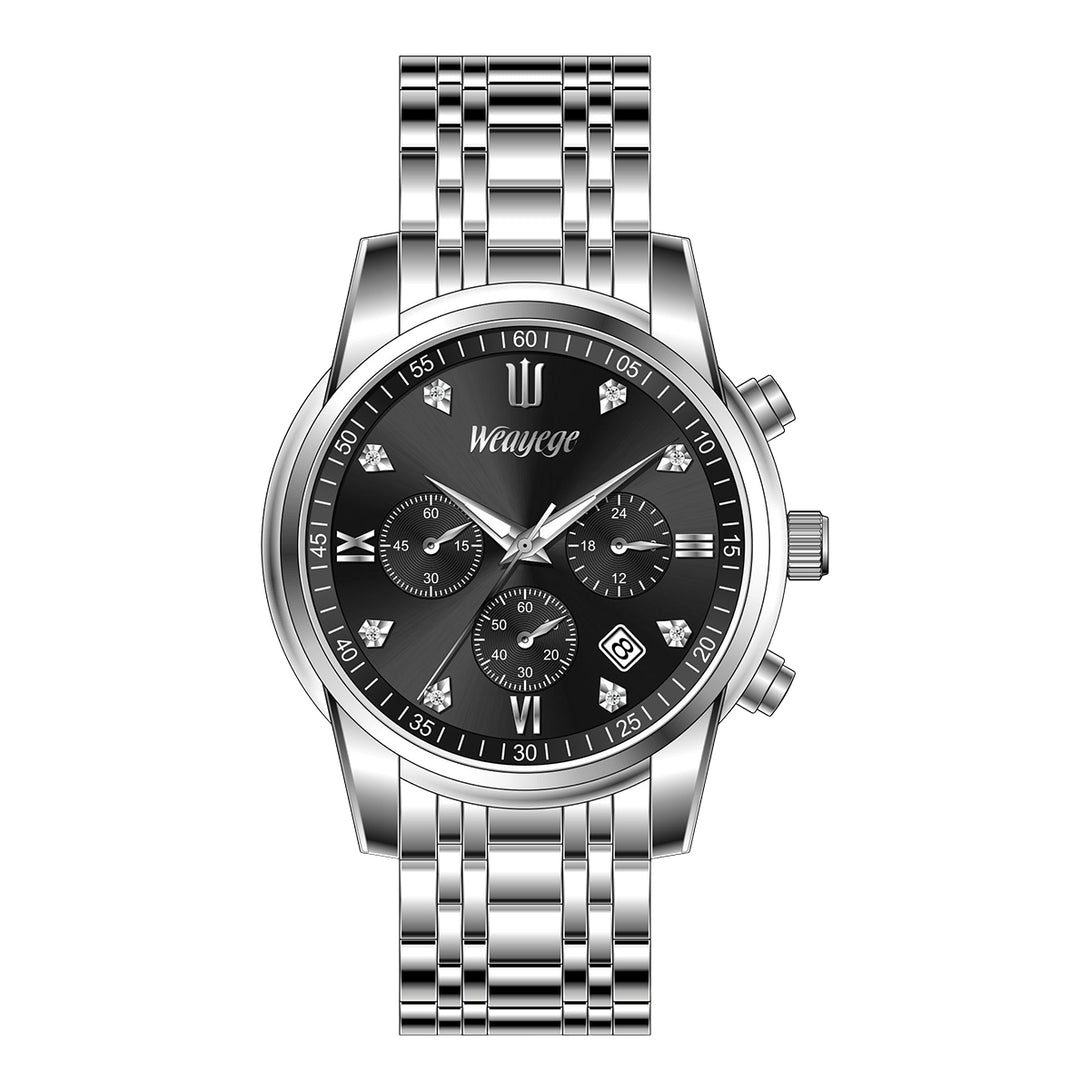 Weayege Men's Stainless Steel Chronograph Watch, Easy to Read Analog Quartz Watch, Luxury Waterproof Date Diamond Roman Arabic Numeral Dial Dress Watch for Men