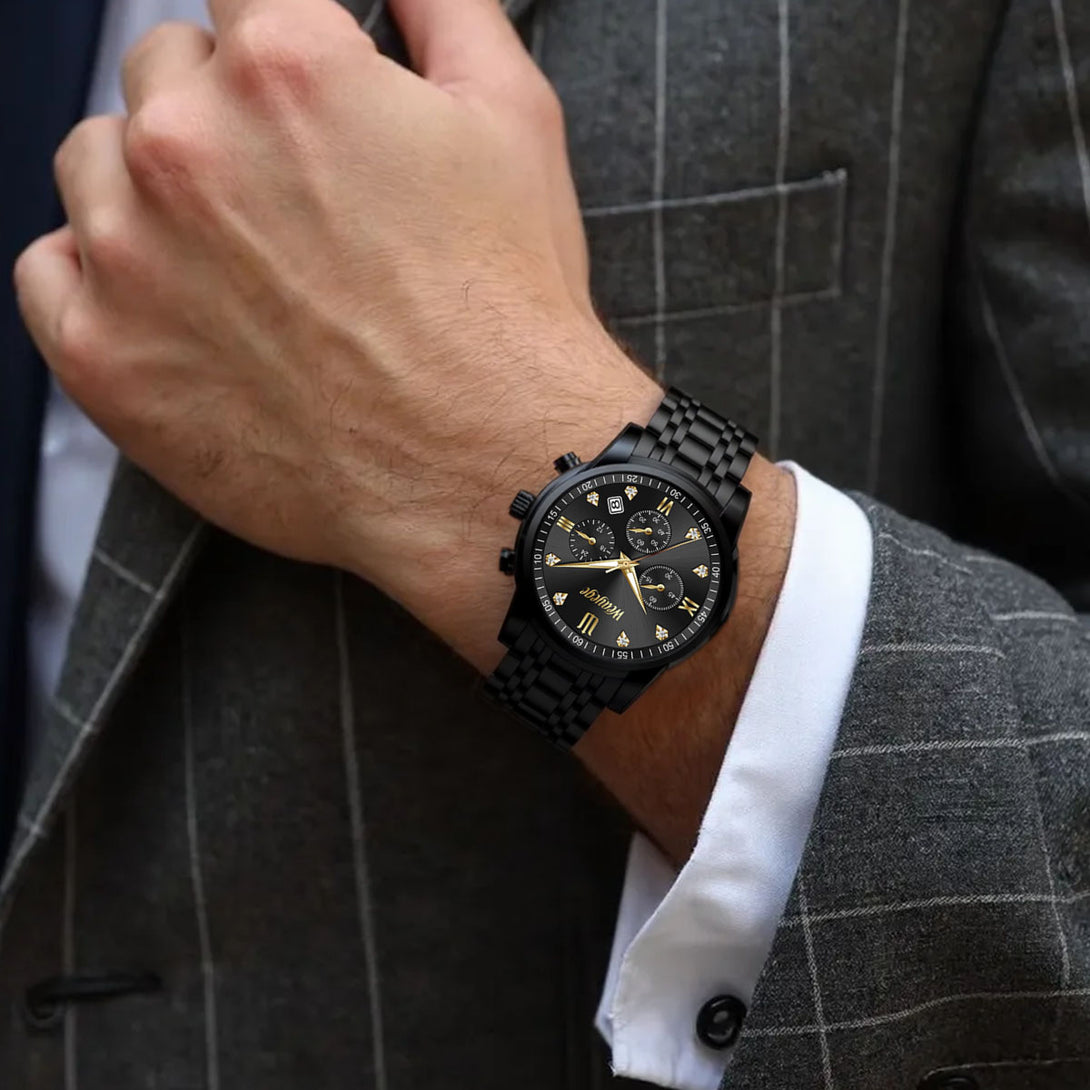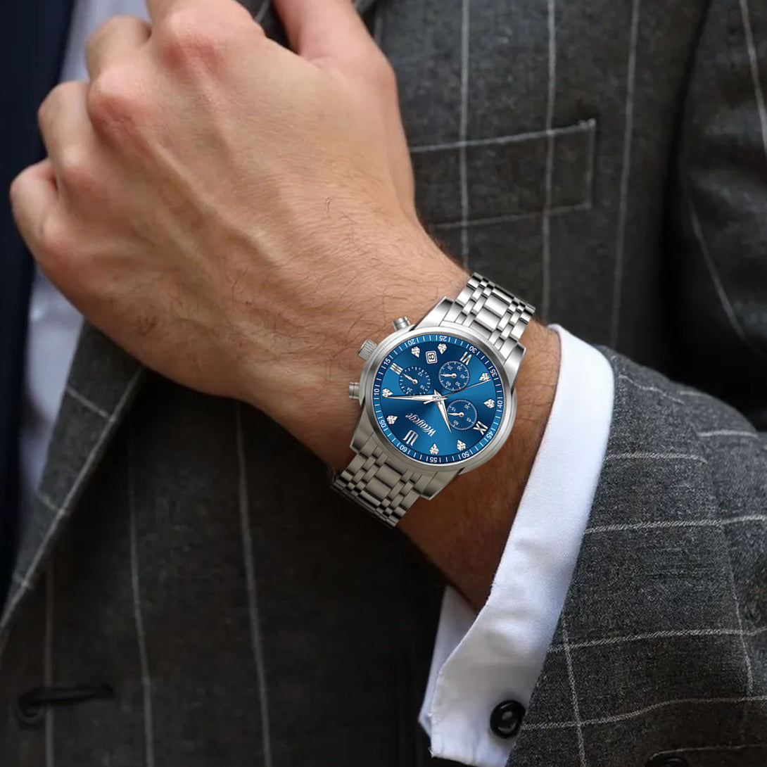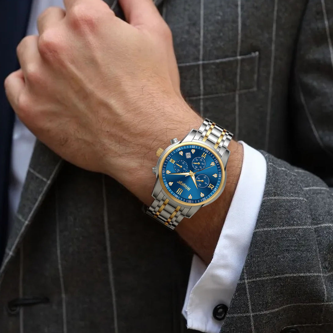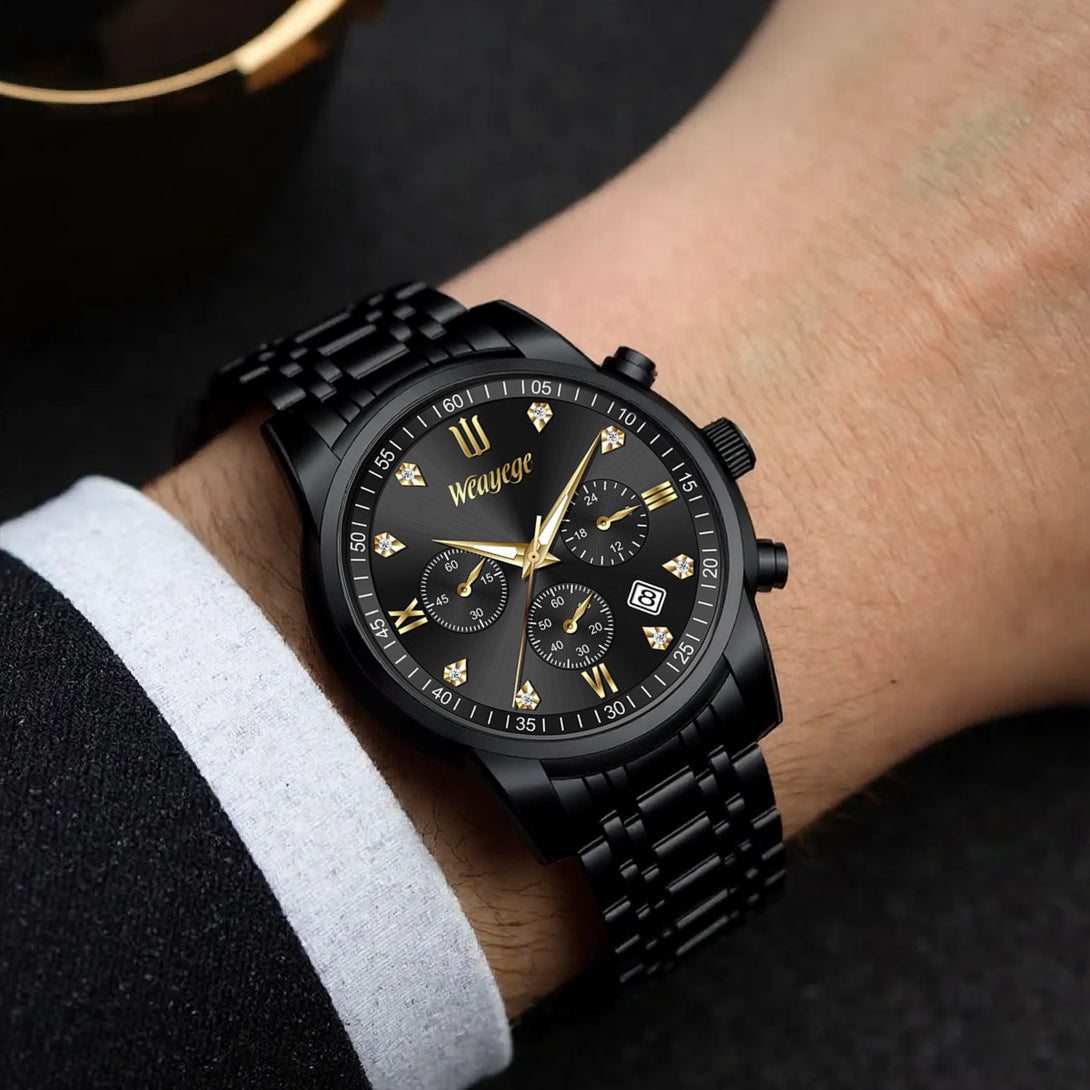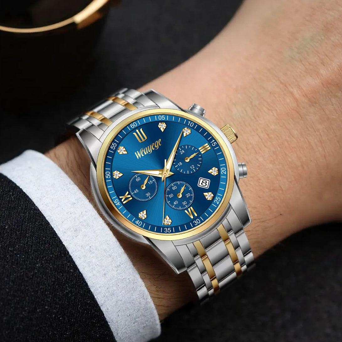 Weayege Men's Stainless Steel Chronograph Watch, Easy to Read Analog Quartz Watch, Luxury Waterproof Date Diamond Roman Arabic Numeral Dial Dress Watch for Men