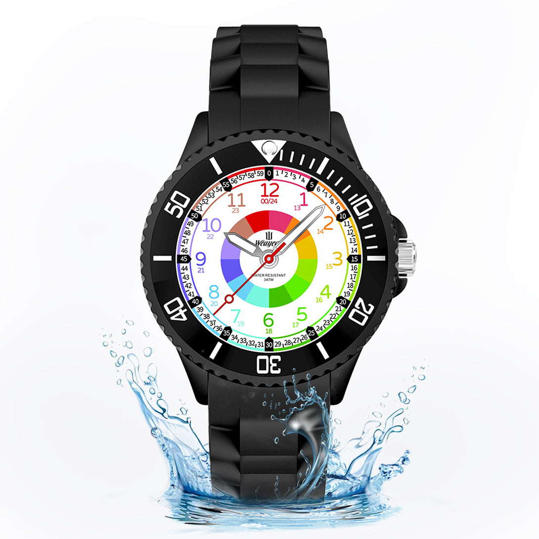 Weayege Kids Watch - Analog Watches for Kids -Boys and Girls Aged 5-16, Rotating Bezel, Soft Strap, Japanese Quartz Movement. Easy to Read and Learn Time