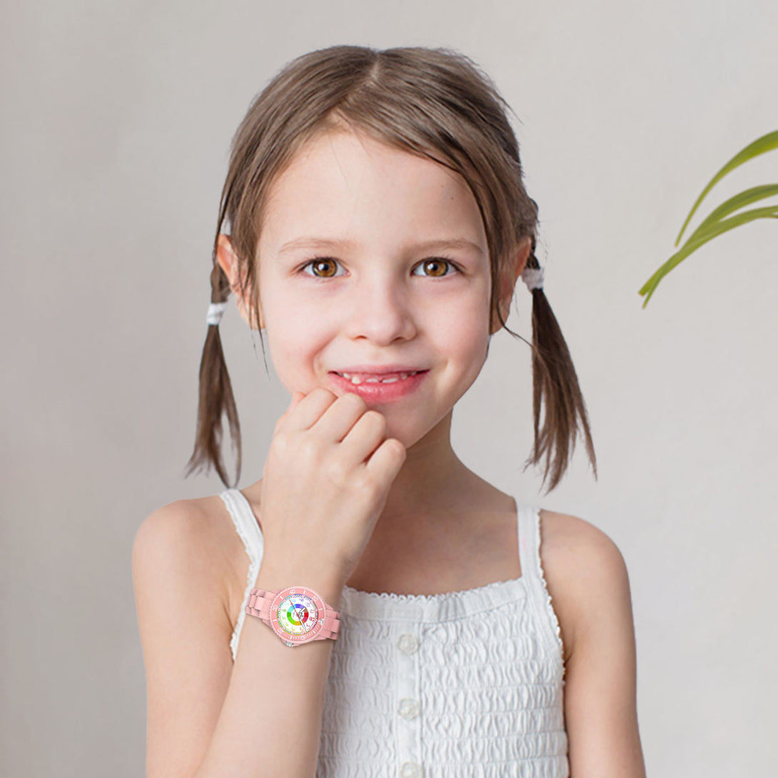 Learn to Tell Time: The colorful digital hands on the inner ring with clear time scale make it easy for children to learn to tell time. This fun design is suitable for beginners learning to use analog watches. This educational watch can help children practice reading time and numbers while encouraging them to learn independently.