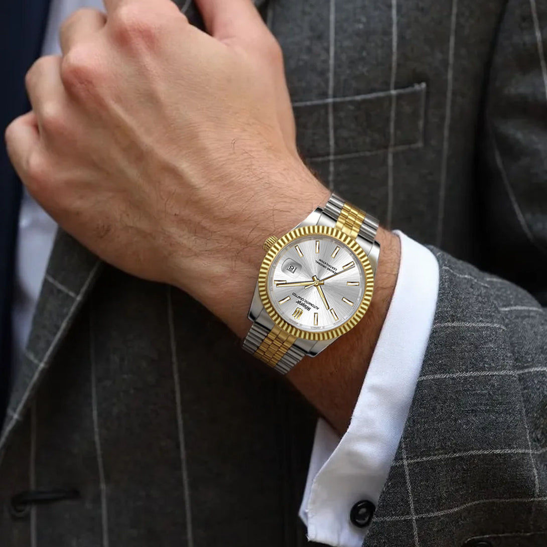 Weayege Men's Automatic Mechanical watch,Simple Stainless Steel Luxury Business Waterproof Watch,with Date Display,Self-Winding